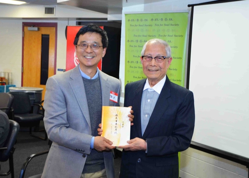华府侨社五位德高望重的长者特地前来参加半杯清茶社十周年纪念茶话会以示祝贺,并在会上发表了热情洋溢的讲话。他们分别是:百岁"三乐"老人刘缘子,年届九旬的海外华人华侨史专家沈己尧教授、黄瑞我伉俪,和著名东西方文化学者陈一川、余筱薇伉俪。刘缘子年届百岁却仍然思路清晰、谈吐幽默,她的发言引来人们阵阵的欢笑声;沈己尧教授则向半杯清茶社赠送了他再版的文集《浴火重生的年代》。半杯清茶社亦师亦友的长者、曾三度为本社作精彩演讲的陈一川先生对清茶社成员和今后的活动寄予厚望,另特别介绍并赠送由美国作家、哲学家Will Durant 和 Ariel Duran 夫妇合著之The Lessons of History《历史的教训》。他引述现代著名哲学家和文学家 George Santayana (乔治.桑塔耶拿) 的名句:"Those who cannot remember the past are condemned to repeat." ("忘记过去者注定会重蹈覆辙"),指出以史为鉴在当今社会的重要意义。