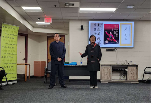 讲座圆满结束之前,谢先生与线下参与的太极拳爱好者互动,回答他们的问题。他们热切希望谢先生能够在蒙郡开班传拳,谢先生表示会积极寻找合作伙伴,满足大家的要求。崇艺农也结合自己的生活经历和大家分享她对中华传统文化及太极拳健身养生的理解和体悟。