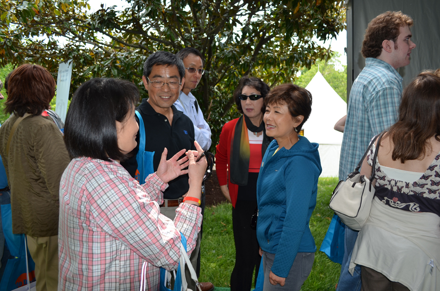 五月七日,欧盟国家驻美国大使馆举行年度开放参观活动, 是日风和日丽,春意盎然。 上午,部分半杯清茶社成员在位于华府乔治城以西的德国大使官邸汇合,参加德国大使馆在那 里举办的园游活动。 德国大使官邸位于一片山坡地之顶,在楼前放眼望去,周遍美景尽收眼底。除了官邸一楼会客室、宴客厅的开放参观外, 诺大的官邸花园中,形式多样的有奖趣味活动吸引了许多访客的热情参加。德国啤酒杯和咖啡杯是人们中意的小奖品,而人人有份的个人德国风光照,配上相宜的镜框,也吸引人们于 帐蓬前排起了长队。 在阳光下、惠风中、树荫旁和现场管乐队前,大家手把德国生啤酒,品尝着风味独特的现烤香肠,谈笑风生,享受异国的文化情调和大自然赐予的和煦美景。 德国馆之后, 部分文友们前往在乔治城一带的法国、瑞典、西班牙等国家的驻美大使馆继续当日的参观和园游活动。