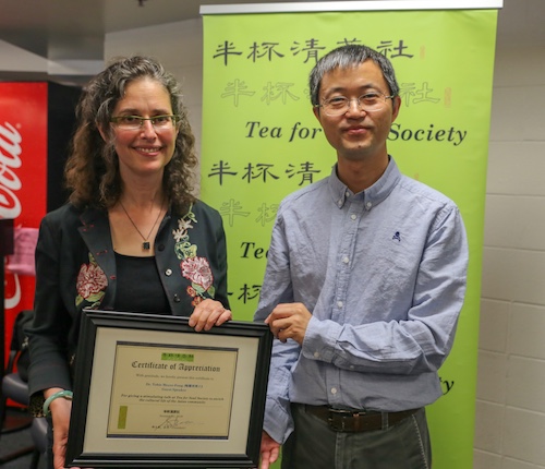 半杯清茶社社长邵立荣向梅教授颁发感谢状