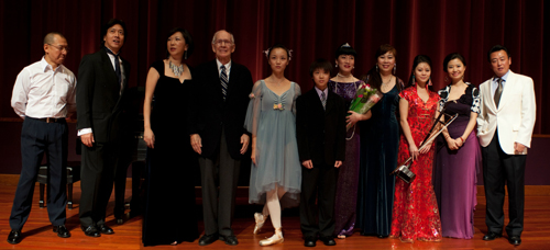 音乐赞助人佛杰先生同演员们合影
