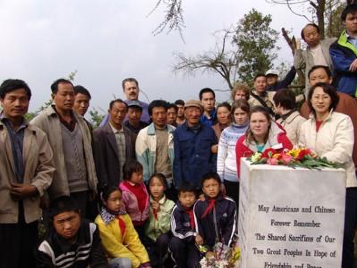 10年后,朱迪来到纪念碑前缅怀父亲。她写道:“站在中国南方的山间,我们发现了当地善良和极富同情心的人们。我们基于共同的历史和价值观建立起了深厚的联结与情谊。我们遇到了那些耕种劳作、养育孩子、在战争和艰难困苦中幸存下来的家庭,他们基本上没有受到外界的注意。这些生活在云南山区云雾之南的强壮的彝族人民,心怀感恩和荣誉,前来缅怀一位美国军人。我给自己找到了一个空间,在那里,一个来自美国的军人女儿可以漫步在人群中,寻找她父亲的记忆,就像回到自己的家里一样。天上的太阳越来越低。终于到了回村的时间了。我在冰冷的石头上亲吻了我父亲比尔的名字,并再次感谢大家和我们一起来到这里祭奠我的父亲。当我们转身走向下山的陡峭田野时,在靠近纪念碑石的地方,有人燃起了一串串响亮的爆竹,那爆竹声仿佛在说,‘我们终于到了,我们来到这里表达了对比尔的追忆和敬意!' 多么好的中国传统啊!这是一个充满回忆、鲜花与爆竹气息的日子。”