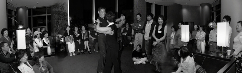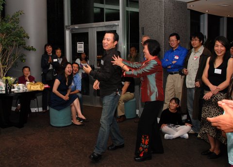 热歌之后,劲舞随之而上。许之微和张向欢夫妇的阿根廷探戈和萨尔萨舞 (Salsa),舞姿优美奔放,充满着青春活力和南美风情,不少与会者深受感染,也情不自禁地“下海”起舞,将晚会的节日气氛推向新高。晚会主持人崇艺农有“华府第一女翻译”之美誉,多次主持大型艺术表演和社会活动,并担任同声翻译,受到各方高度赞誉。才华横溢、妙语如珠的她,再度将半杯清茶社的中秋赏月晚会组织得井然有序,精彩纷呈。众多的半杯社员们不计时间,放弃休息,为晚会的成功筹办立下汗马功劳。